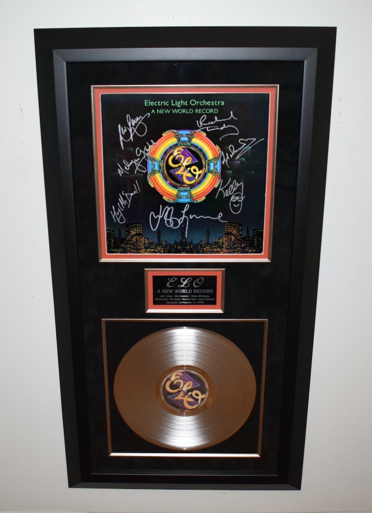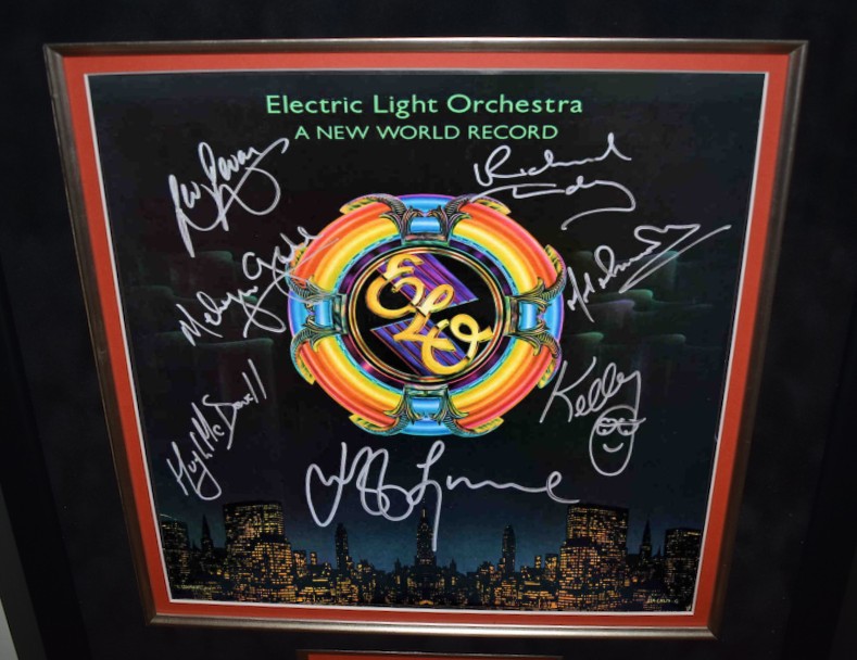 Hand signed by: Jeff Lynne – Kelly Groucutt – Hugh McDowell – Melvyn Gale – Mik Kaminiski – Richard Tandy – Bev Bevan.