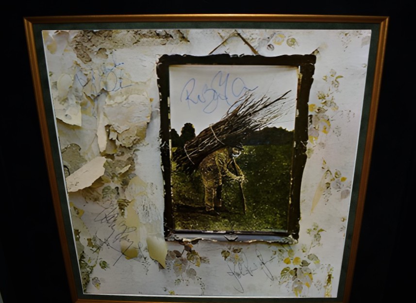 Hand signed in Blue Ball Point Pen by: Robert Plant – Jimmy Page – John Paul Jones – John Bonham.