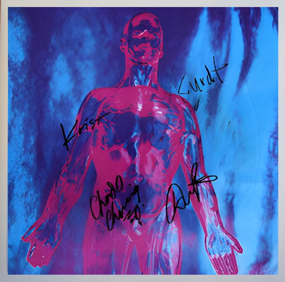 Hand signed by: Kurdt Cobain – Krist Novoselic – Chad Channing – Dan Peters.