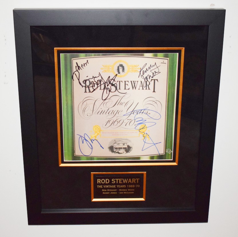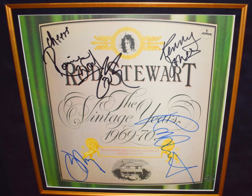 Hand-signed by Rod Stewart, Ronnie Wood, Kenny Jones, and Ian McLagen
