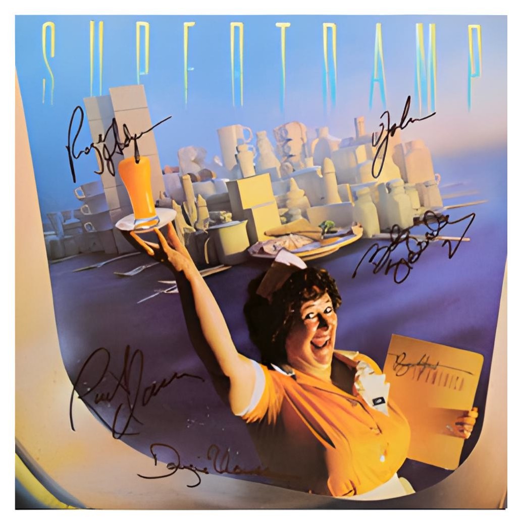 Hand signed by: Rick Davies, Roger Hodgson, John Helliwell, Dougie Thomson, and Bob Siebenberg.